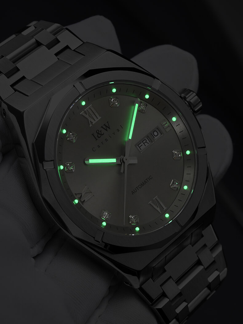 - Kim và mặt số phủ dạ quang.