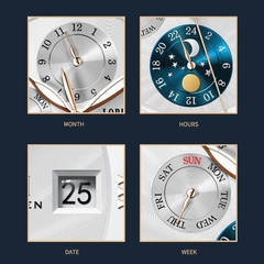 Lịch thứ, lịch ngày, lịch tháng cùng xuất hiện trên mặt số, nhưng điều đó không hề rối mắt mà ngược lại còn tạo nên một tổng thể ĐẬM NÉT NGHỆ THUẬT bởi từng chi tiết của đồng hồ nam LOBINNI No.1023LT đều được hoàn thiện và sắp xếp cực kỳ tinh xảo.