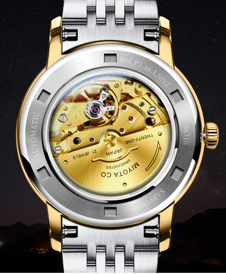 Cỗ máy Automatic 21 chân kính, với khả năng trữ cót lên đến 40 tiếng. Hỗ trợ lên cót tay và cót tự động.