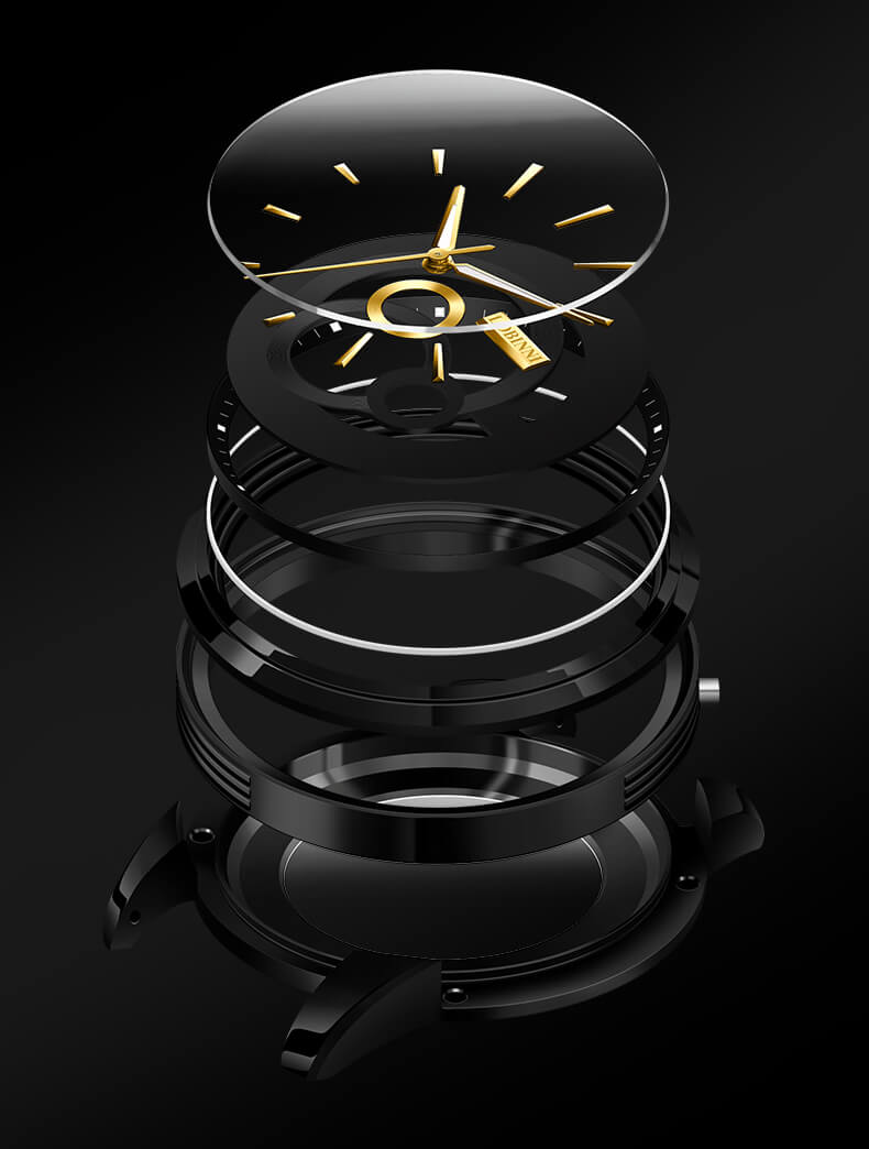 Dưới lớp kính SAPPHIRE NGUYÊN KHỐI là thiết kế mặt với 2 tông màu ĐEN HUYỀN BÍ kết hợp cùng VÀNG PHÚ QUÝ tạo nên một tổng thể cực kỳ thời thượng.