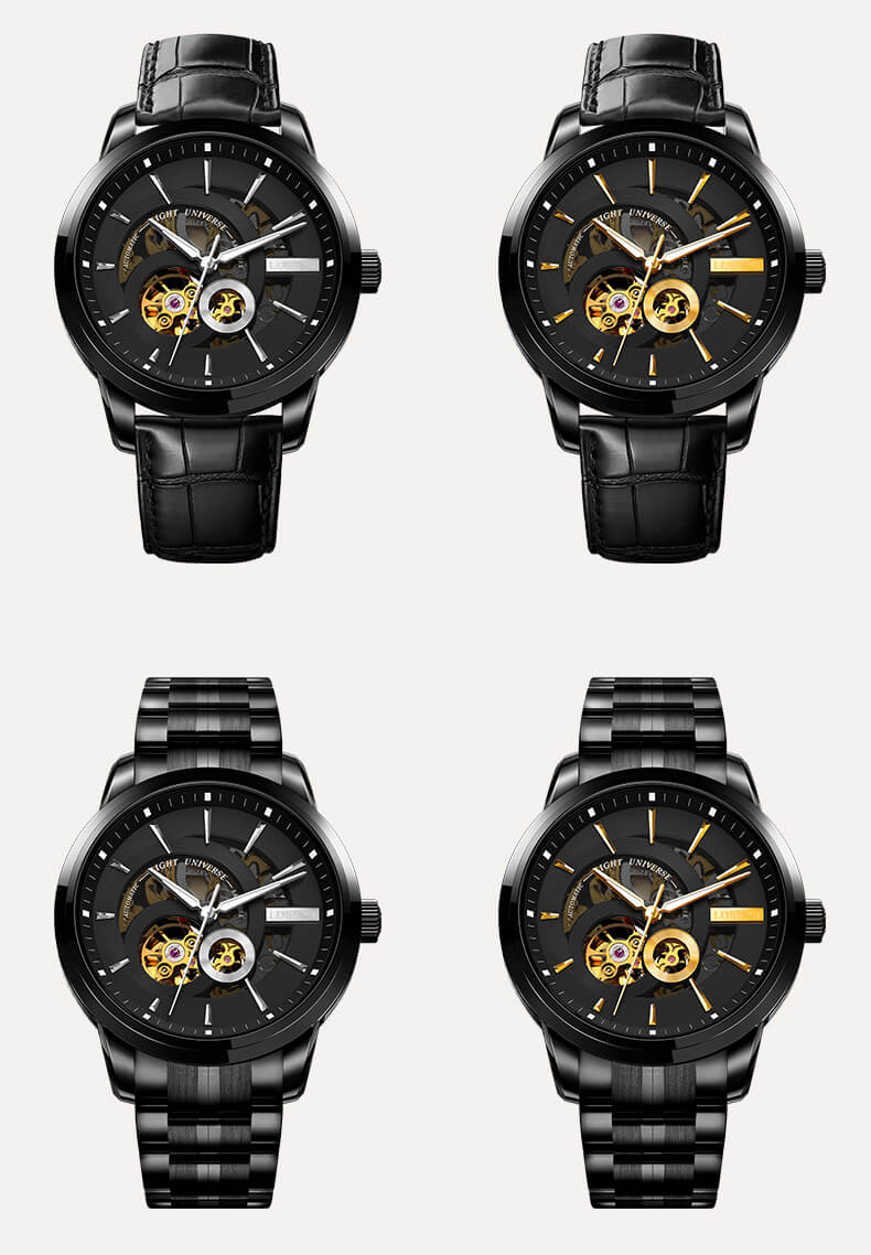 Thiết kế OPEN HEART vô cùng nổi bật phô diễn trọn vẹn chi tiết máy trên nền đen huyền bí - để lộ những viên chân kính màu hồng tím lấp lánh, phô diễn nhịp thở cơ khí một cách khéo léo. Một vẻ đẹp quyến rũ rất hiếm khi tìm thấy ở những chiếc đồng hồ tầm trung.