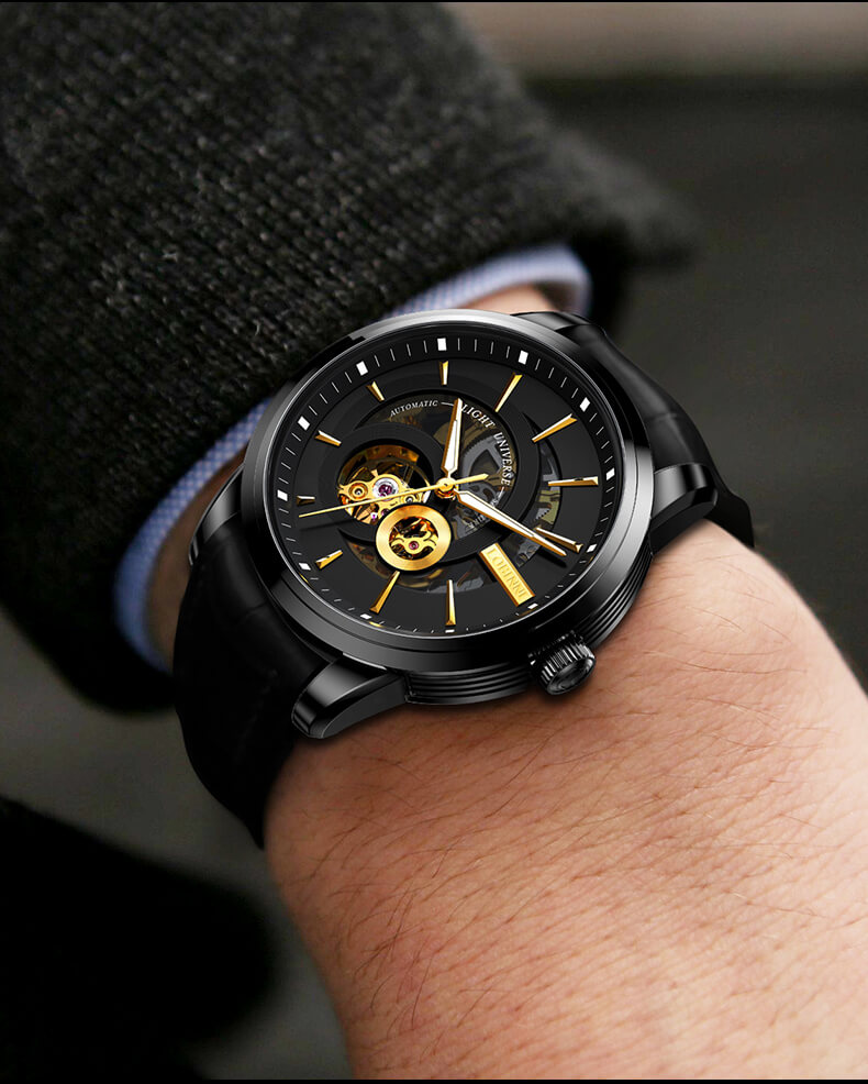 Không hở lộ toàn thân táo bạo như những nàng Skeleton nóng bỏng, không e ấp như những thiết kế hở van tim thông thường, cỗ máy khiến đấng mày râu mê mẩn với kiểu thiết kế lộ cơ phá cách độc đáo, khéo khoe những chuyển động mê hoặc của bánh răng cơ khí.