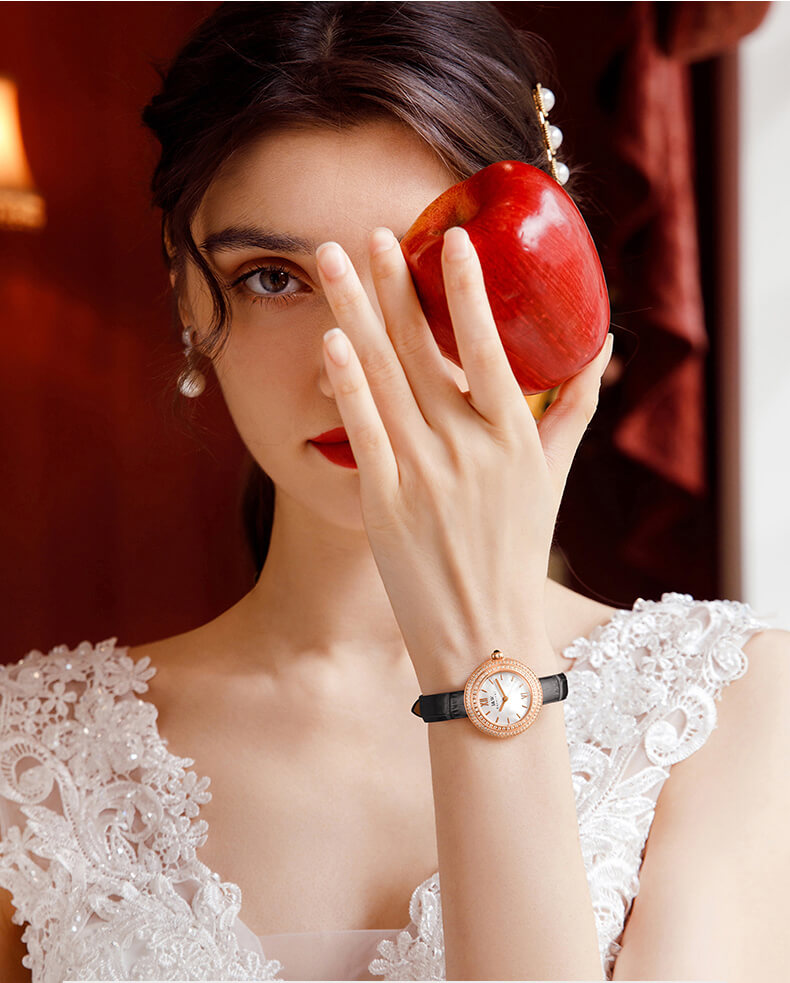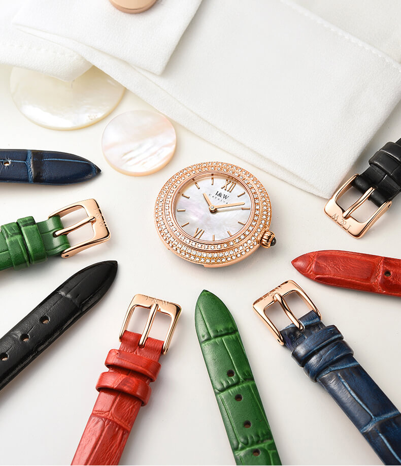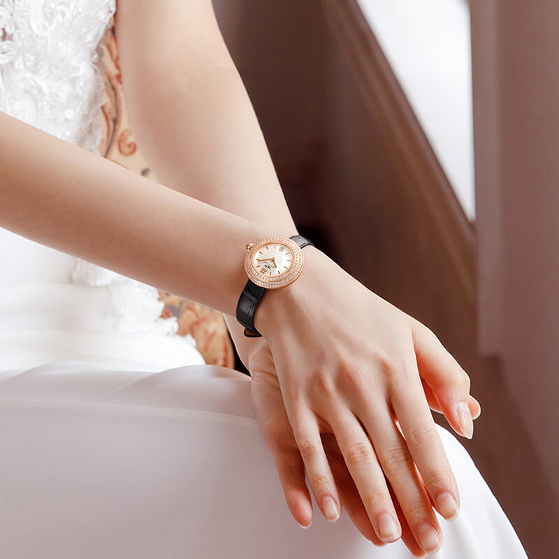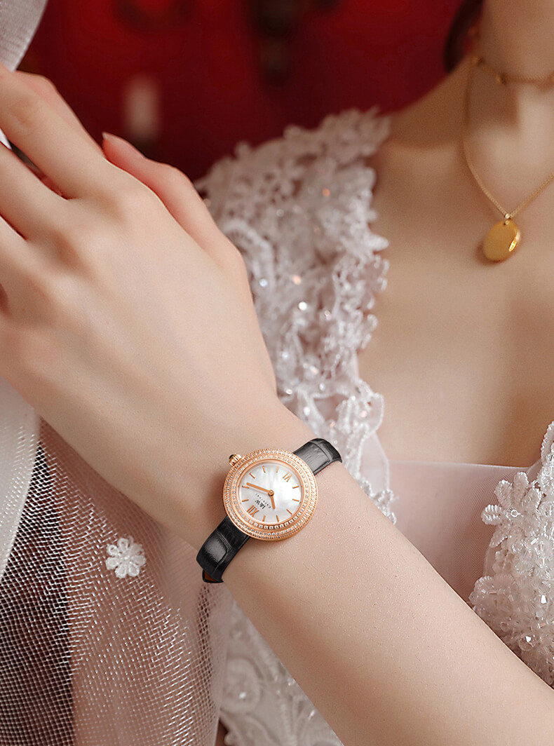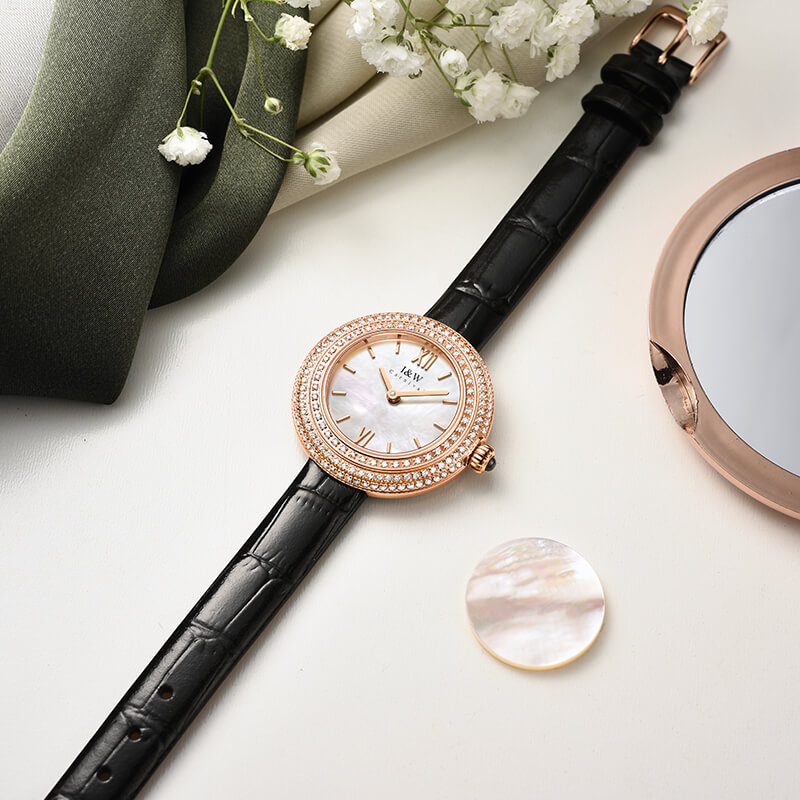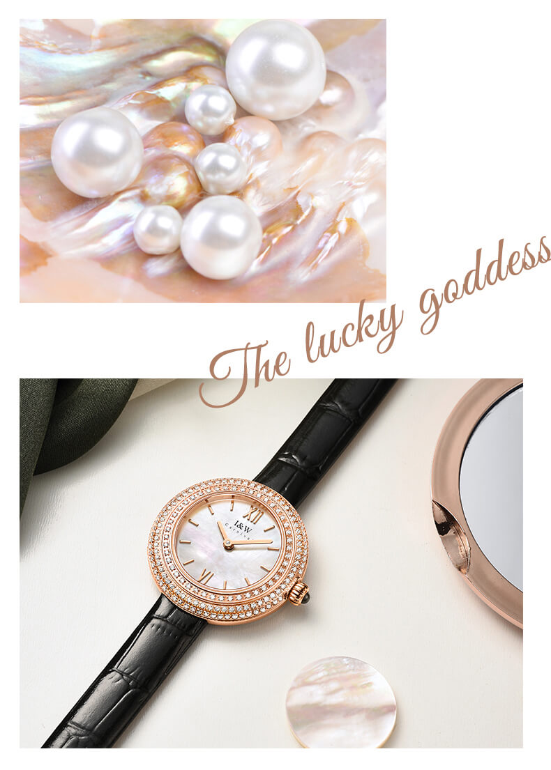 - Phong cách thiết kế Dress watch với mặt đồng hồ ngọc trai.