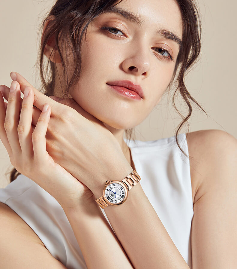 Đặc điểm nổi bật | - Phong cách thiết kế Dress watch. - Vỏ mạ PVD cao cấp màu vàng hồng. |