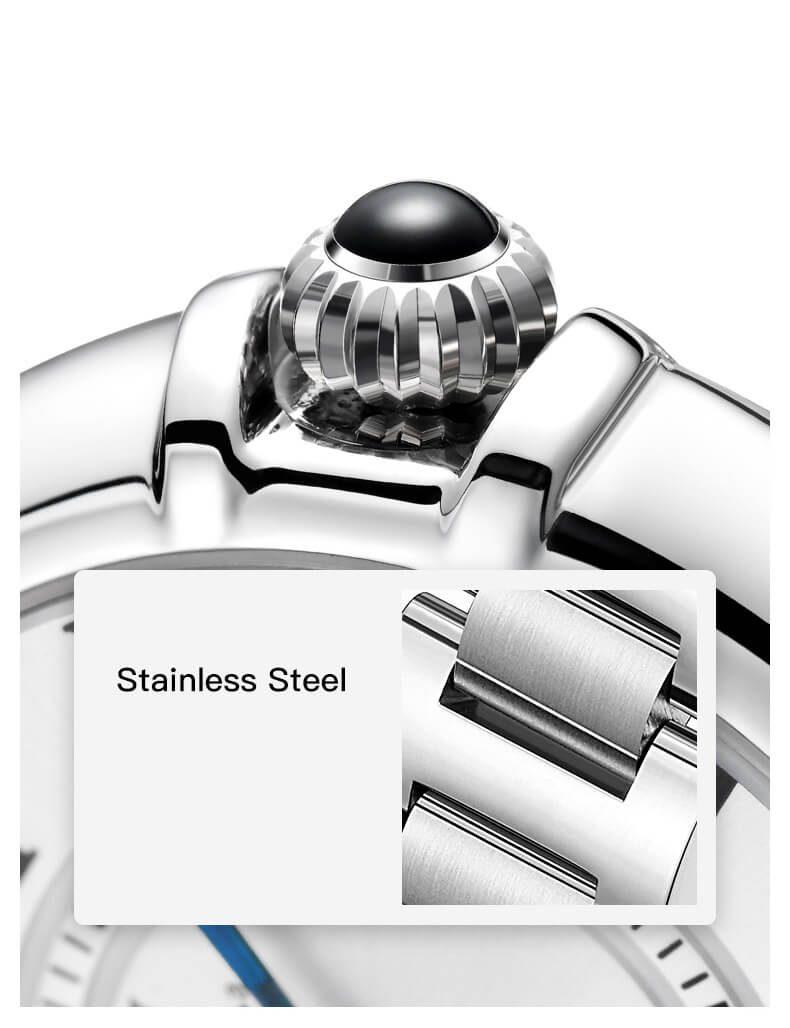 Japan Miyota Quartz Mov't (Máy pin Miyota - Nhật Bản) bền bỉ, chính xác, thời gian sử dụng pin lên đến hơn 3 năm. |