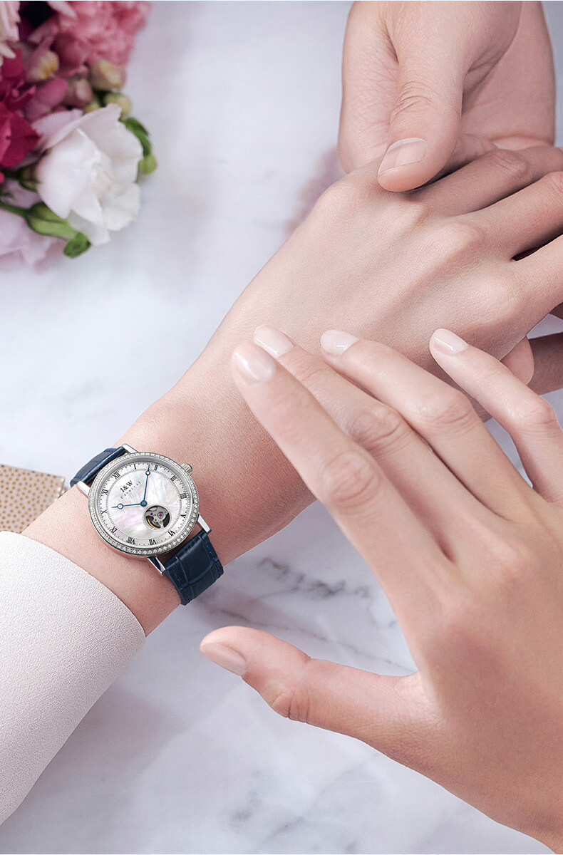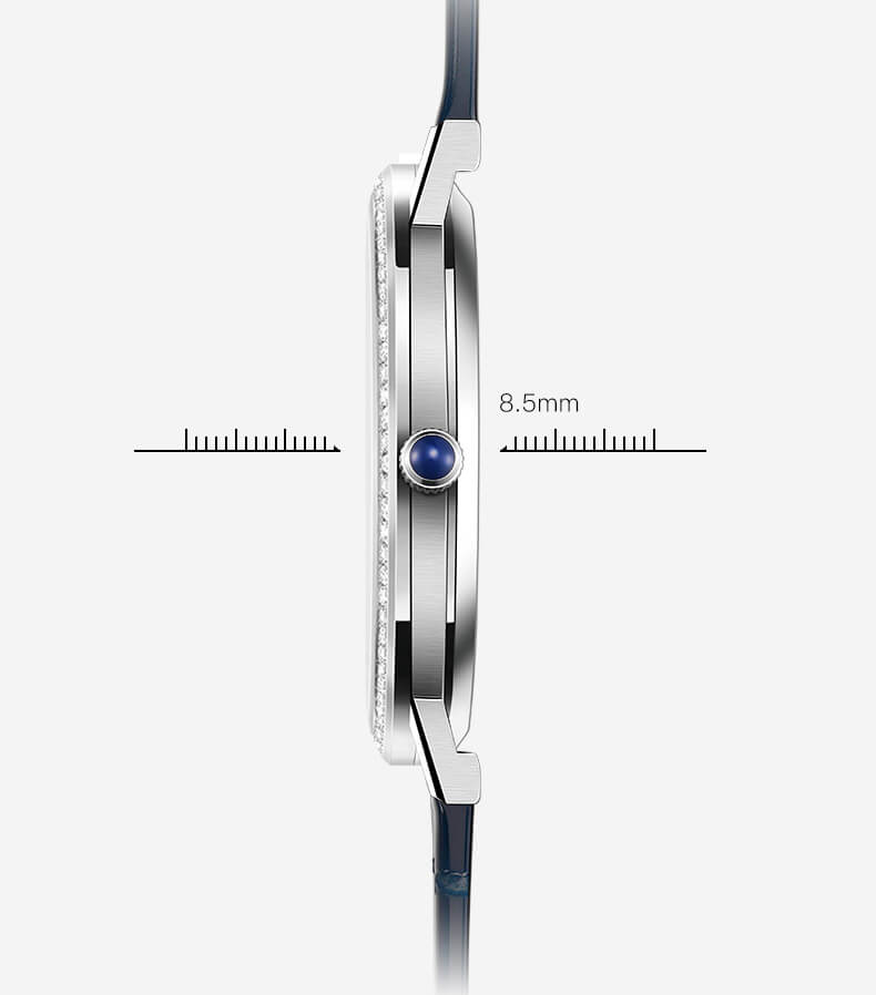 Đặc điểm nổi bật | - Phong cách thiết kế Dress watch. - Mặt ngọc trai, viền đồng hồ đính đá quý. - Máy cao cấp siêu mỏng Miyota 9029 với độ chính xác cực cao. |
