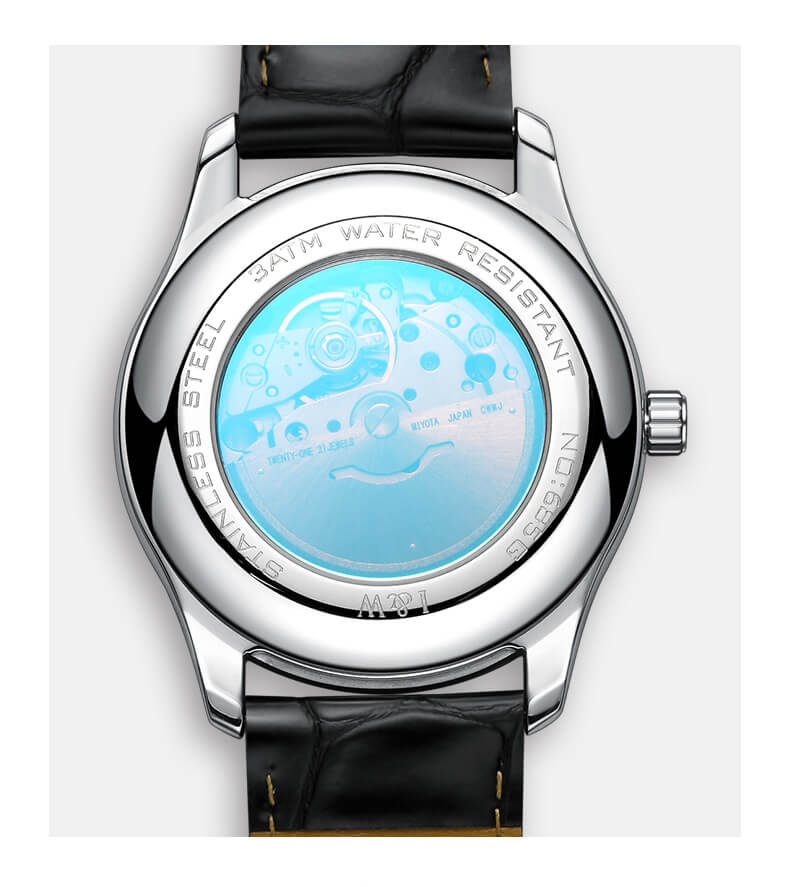 Kiểu máy | Japan Miyota Automatic Mov't (Máy cơ tự động Miyota - Nhật Bản): - 21 chân kính (Jewels). - Tần số dao động 21.600 vph. - Khả năng trữ cót lên đến hơn 42h. |