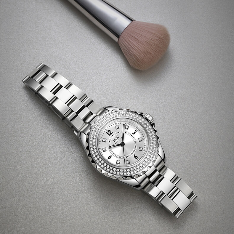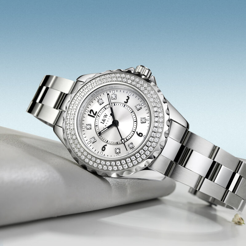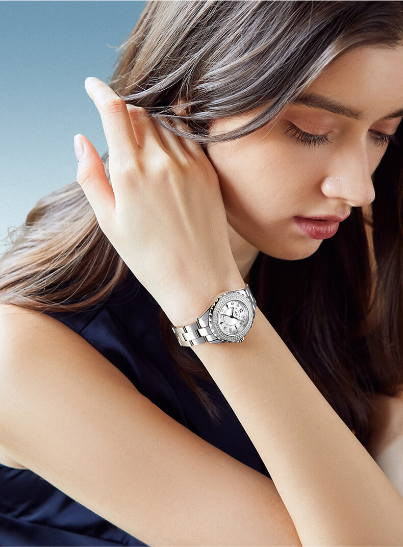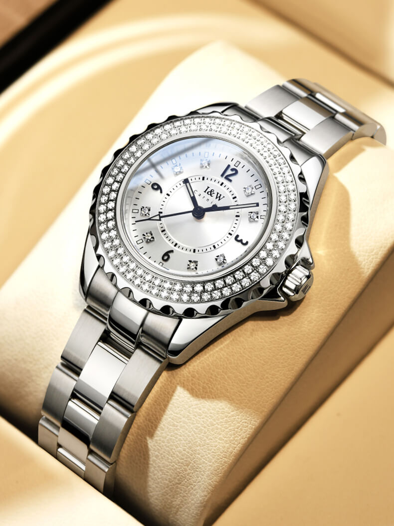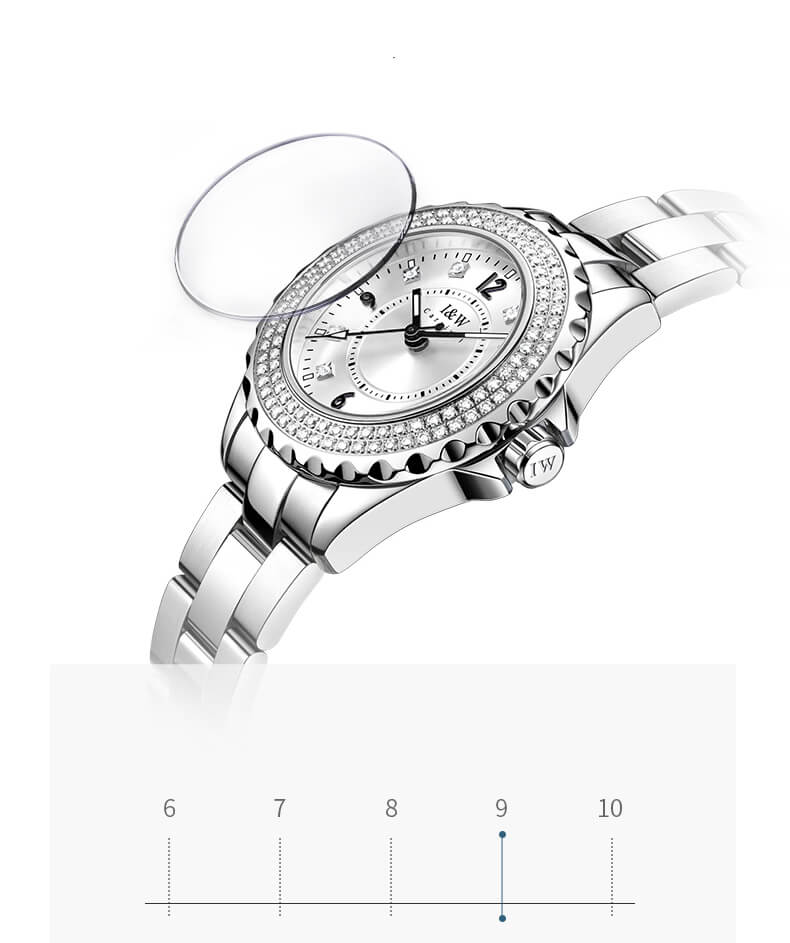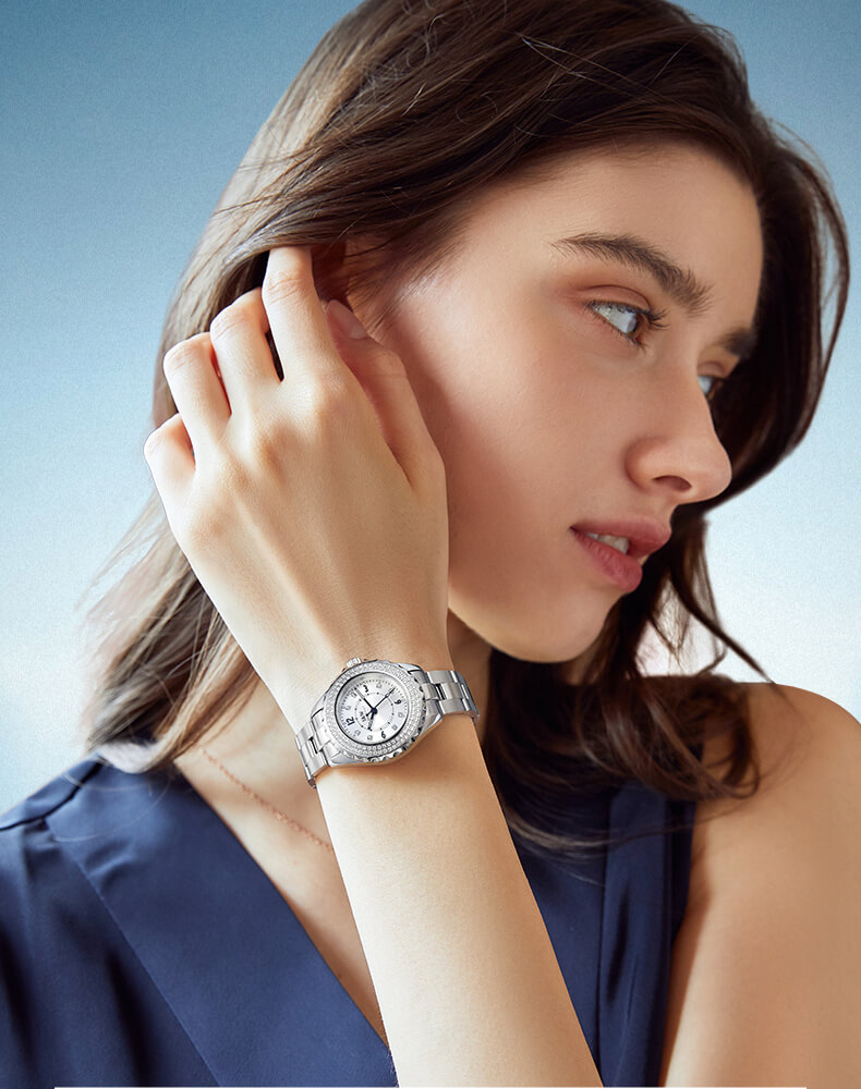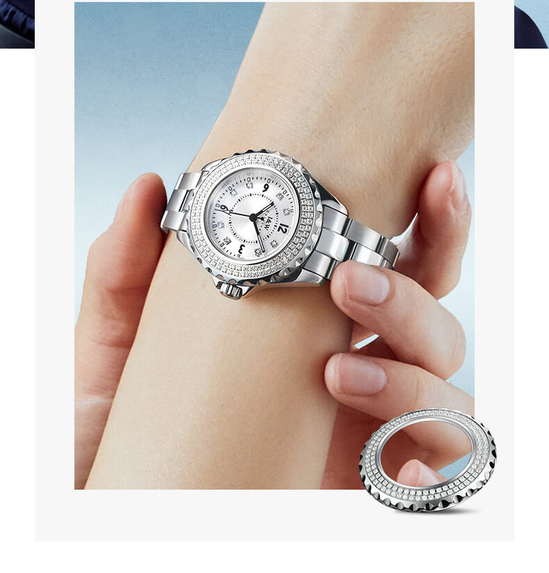 Đặc điểm nổi bật | - Phong cách thiết kế Dress watch. - Cọc số điểm kim cương nhân tạo - Viền băm, đính 2 vòng kim cương nhân tạo lấp lánh, thu hút mọi ánh nhìn. |