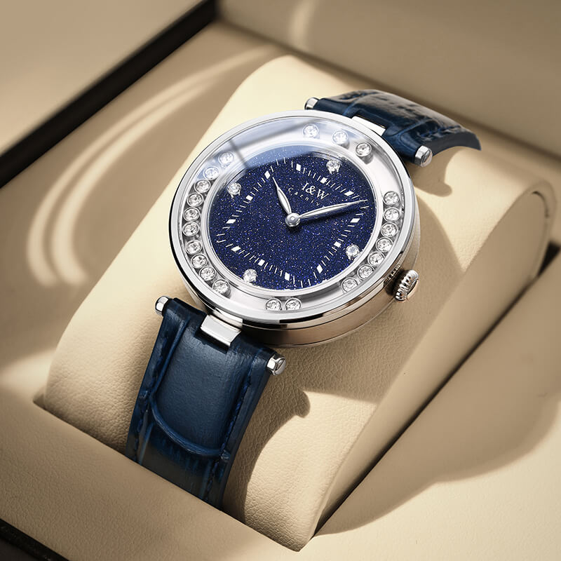 Thiết kế cực sang trọng với 4 viên đá quý toả sáng trên mặt số lấp lánh đầy nghệ thuật, không chỉ đẹp mà nó còn thể hiện được thần thái và khí chất, mang đến sự may mắn cho nàng.