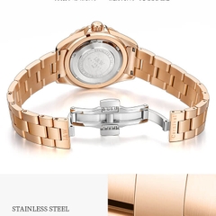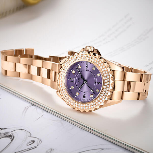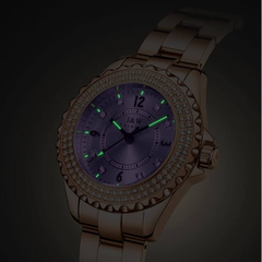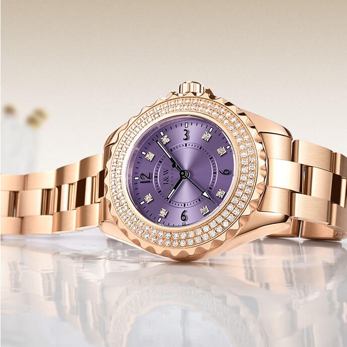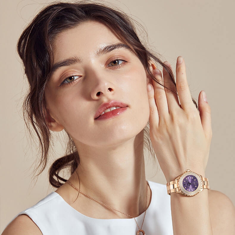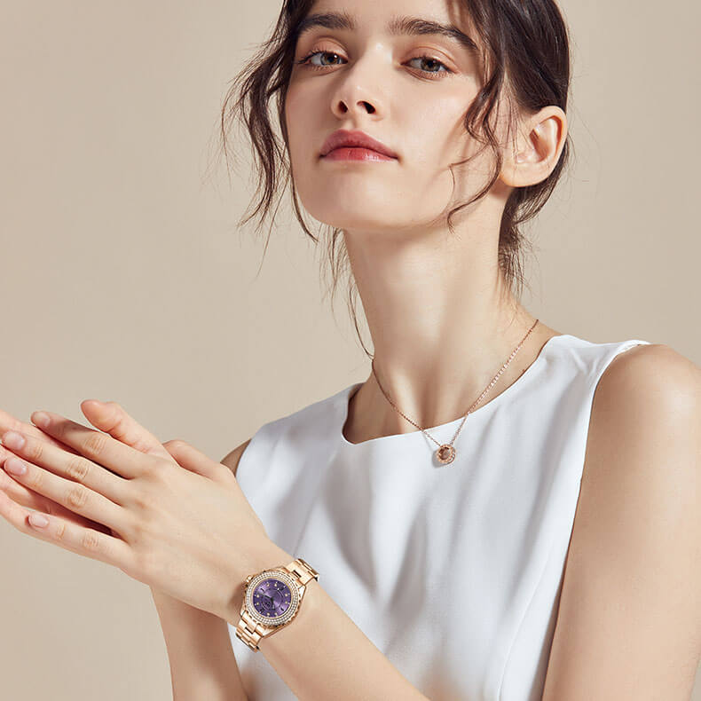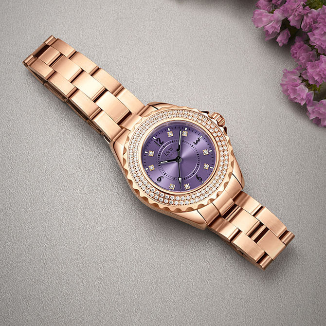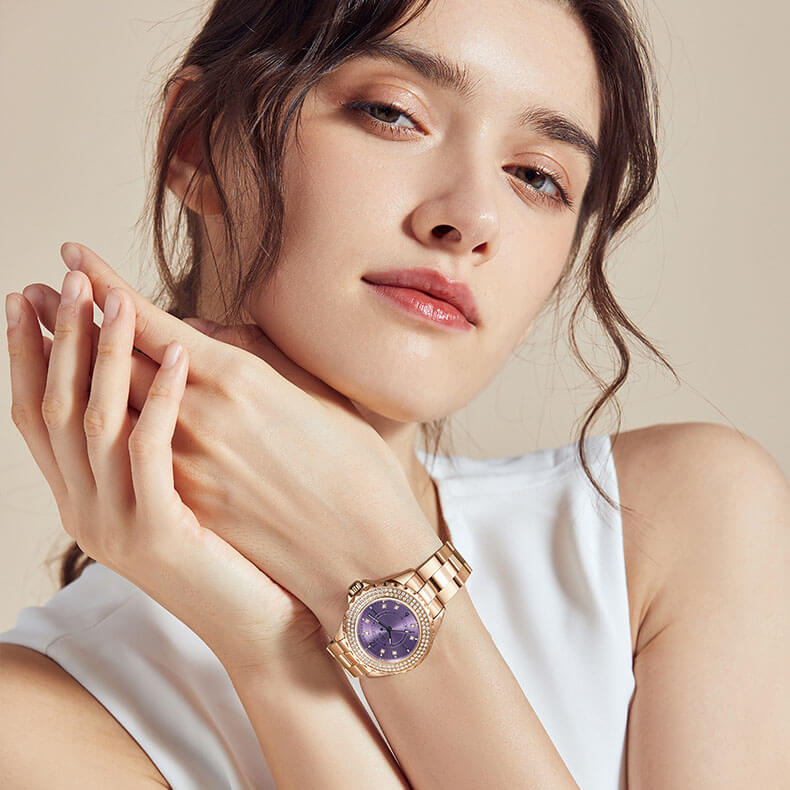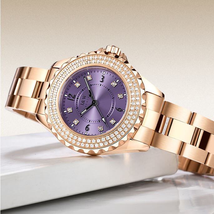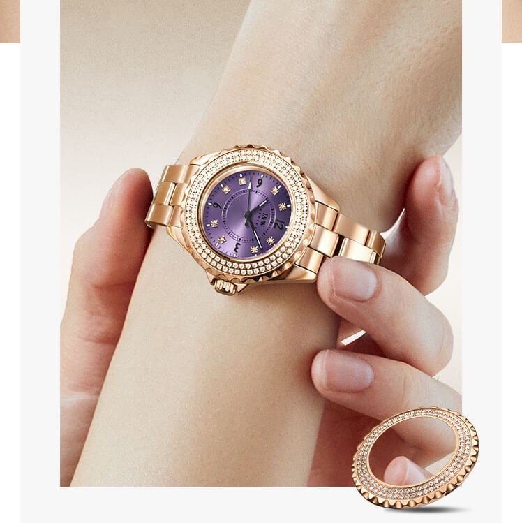 Đặc điểm nổi bật | - Phong cách thiết kế Dress watch. - Cọc số điểm kim cương nhân tạo - Viền băm, đính 2 vòng kim cương nhân tạo lấp lánh, thu hút mọi ánh nhìn. |