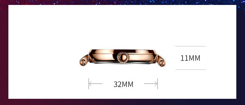 Đặc điểm nổi bật | - Phong cách thiết kế Dress watch, mặt đồng hồ in hình dải ngân hà. - Chức năng: Lộ tim tại góc 5h. - Kim giờ và kim phút phủ dạ quang, mặt số đính đá quý. |