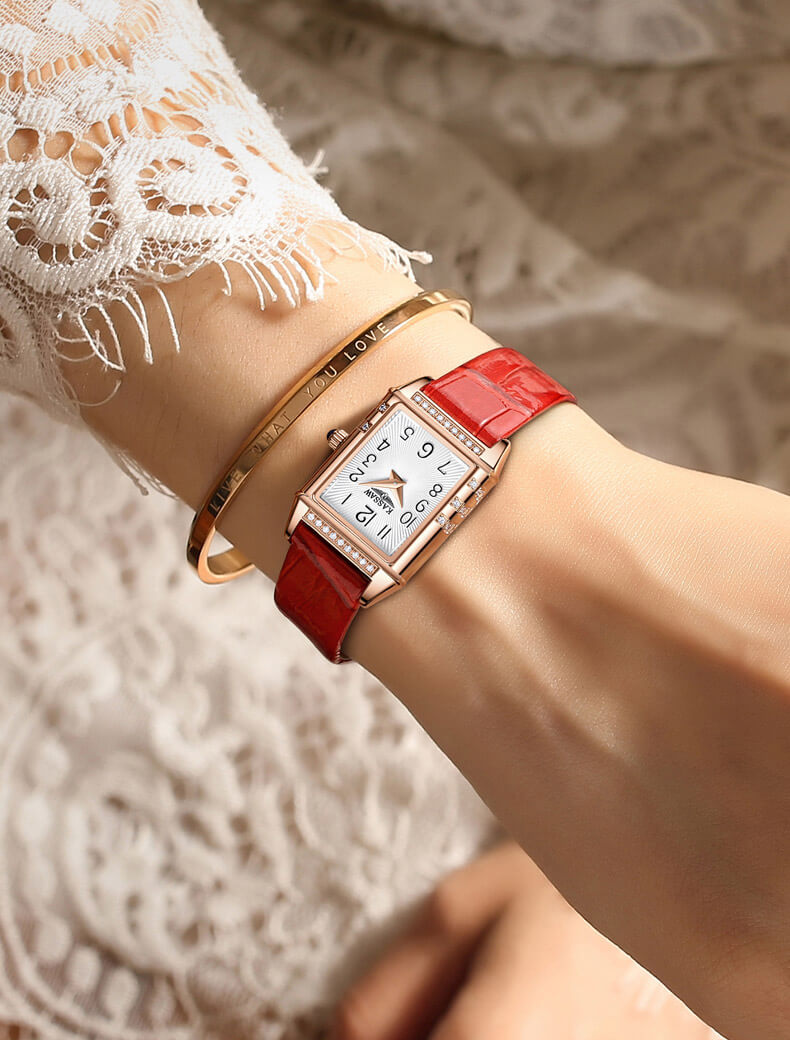 Đặc điểm nổi bật | Phong cách thiết kế Tank watch, viền đính đá quý. |