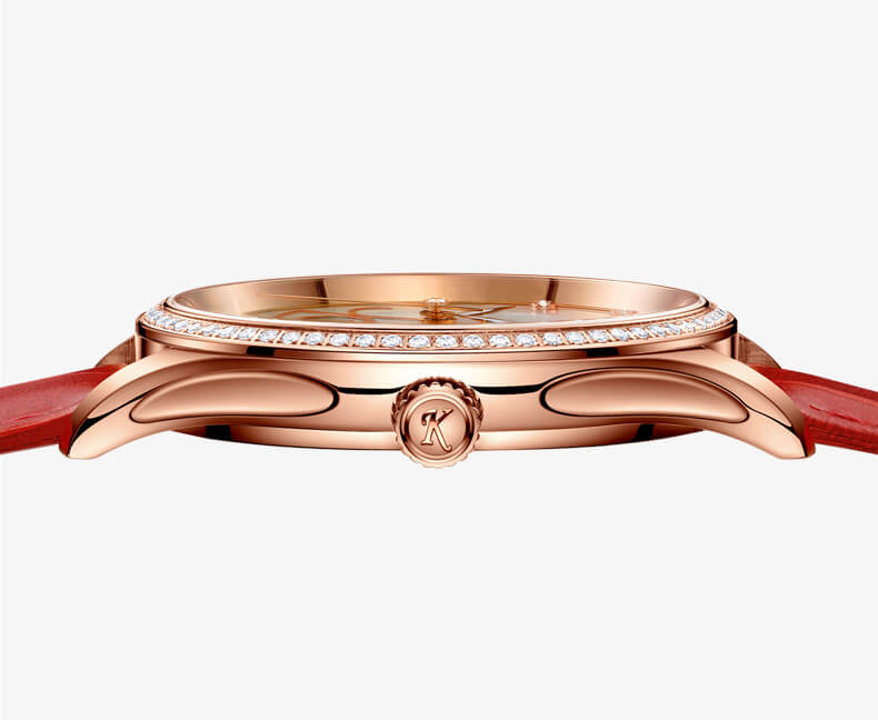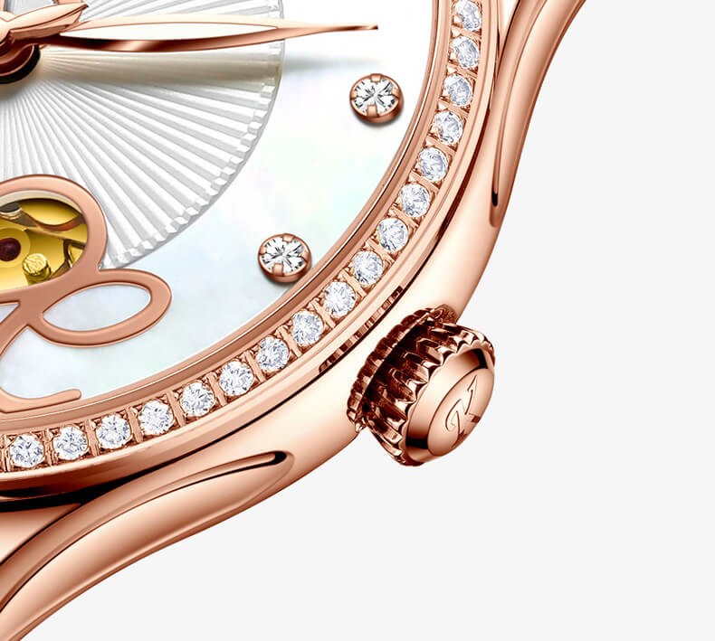 Đặc điểm nổi bật  | Phong cách thiết kế Dress watch, viền và cọc số đính đá quý.  |