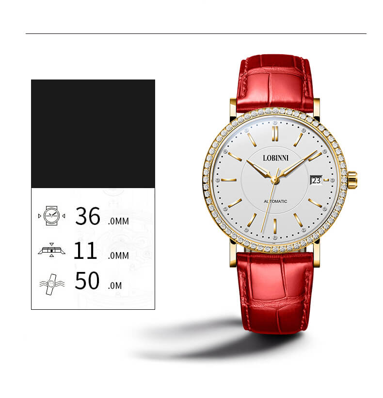 Đáp ứng hầu hết nhu cầu của chị em phụ nữ về vẻ ngoài sang trọng và bộ máy chất lượng nhưng với một mức giá rất phải chăng, Lobinni No.026 là sự lựa chọn rất đáng cân nhắc dành cho phái đẹp.