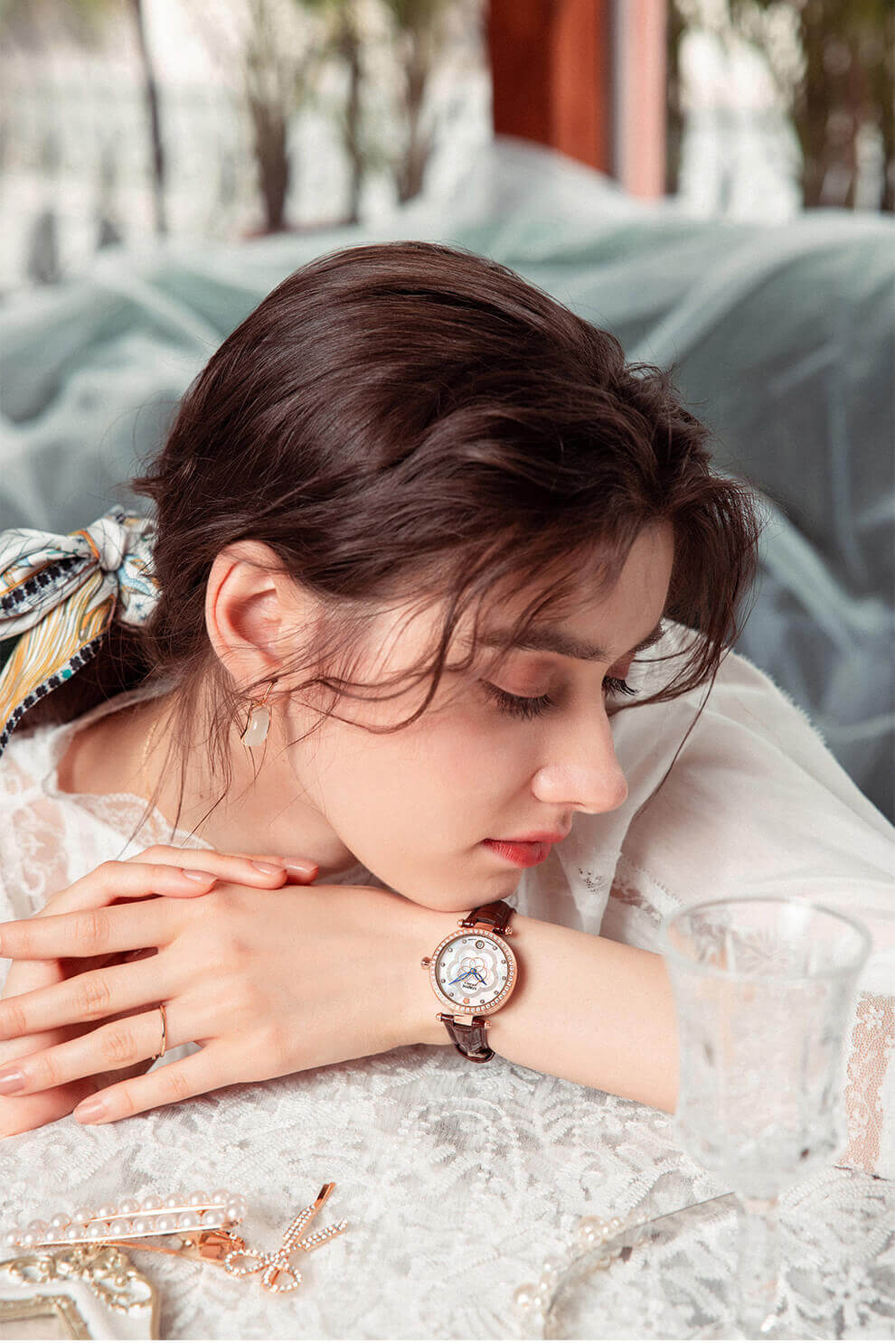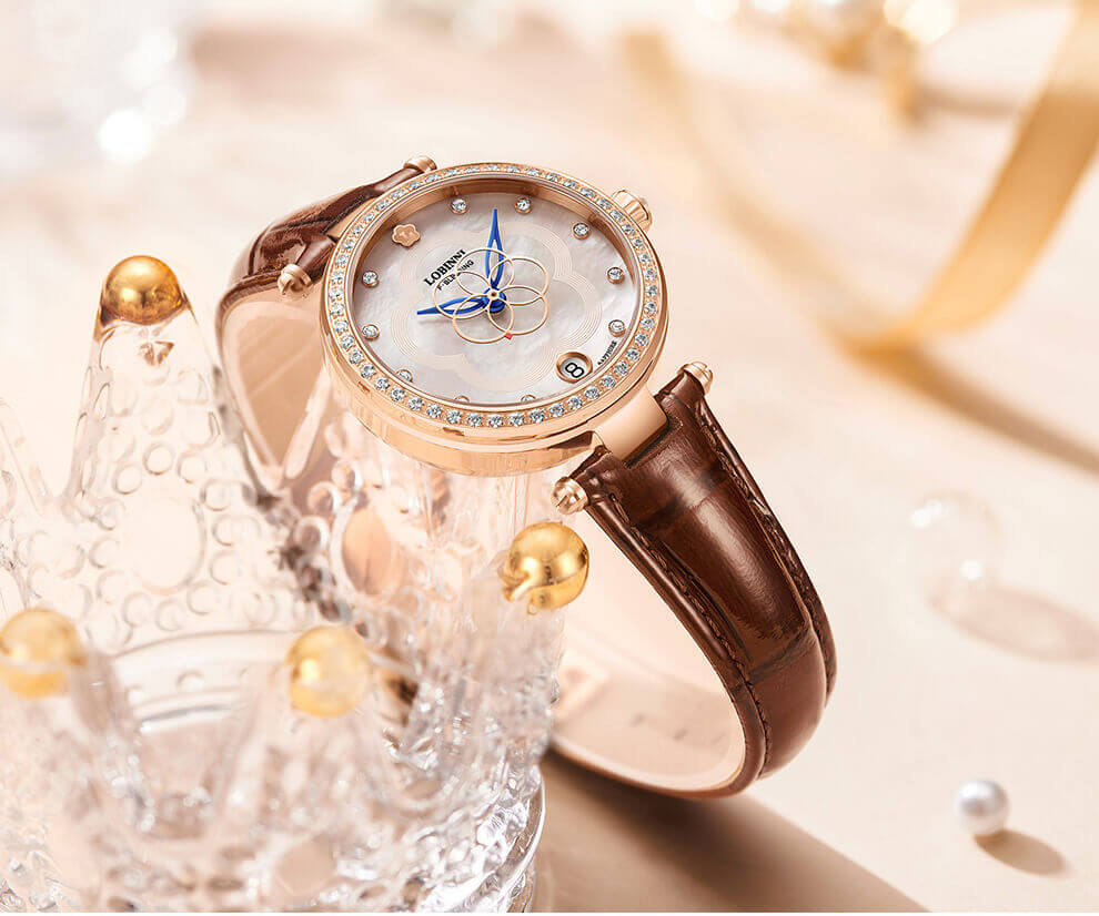 ĐỒNG HỒ NỮ CHÍNH HÃNG LOBINNI NO.2008 ĐÁ QUÝ - VIÊN NGỌC SÁNG TRÊN CỔ TAY