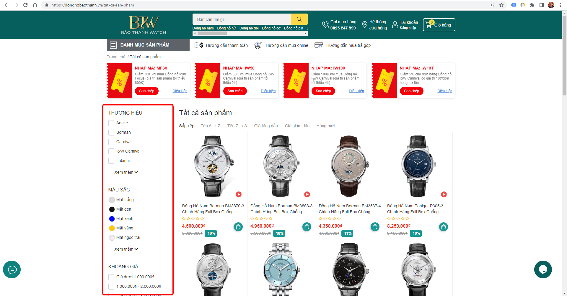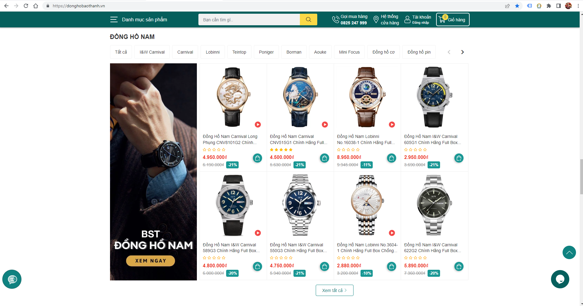 Bạn có thể truy cập website Donghobaothanh.vn để tìm và chọn sản phẩm muốn mua bằng nhiều cách: