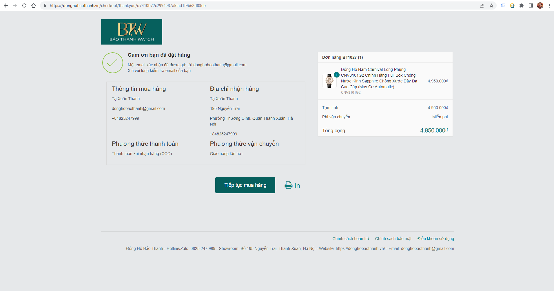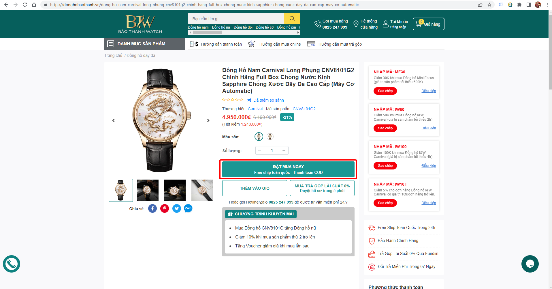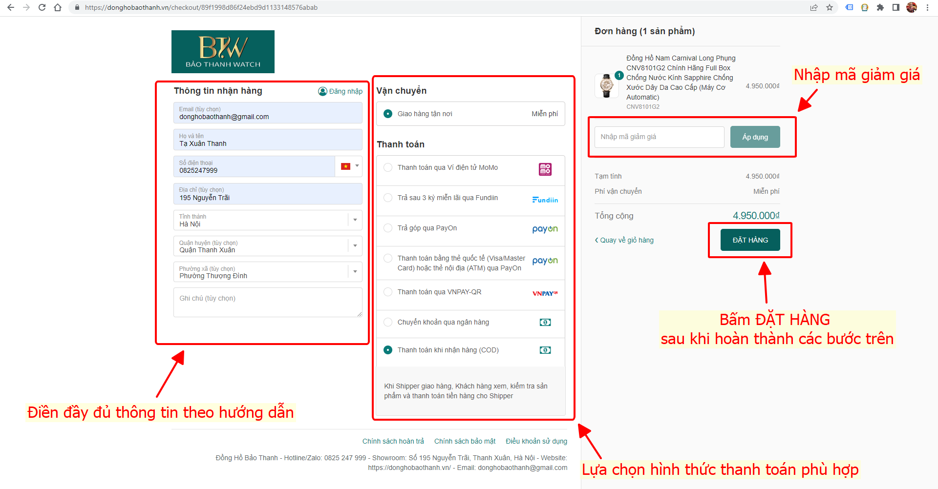 Cách 2: Đặt mua hàng online trên website Donghobaothanh.vn: